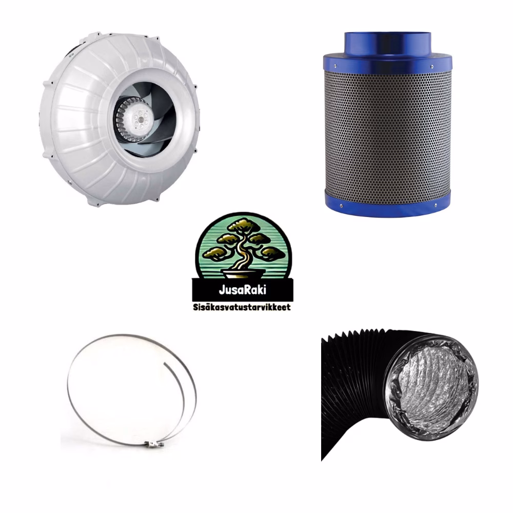 Tämä paketti toimii täydellisesti suurissa kasvatusteltoissa, joissa tarvitaan luotettavaa, hajutonta ja tehokasta ilmanvaihtoa.